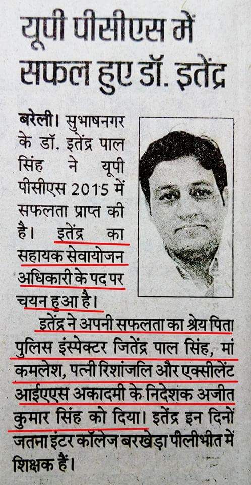 Dr.Etendra Pal Singh got Selected in PCS 2015